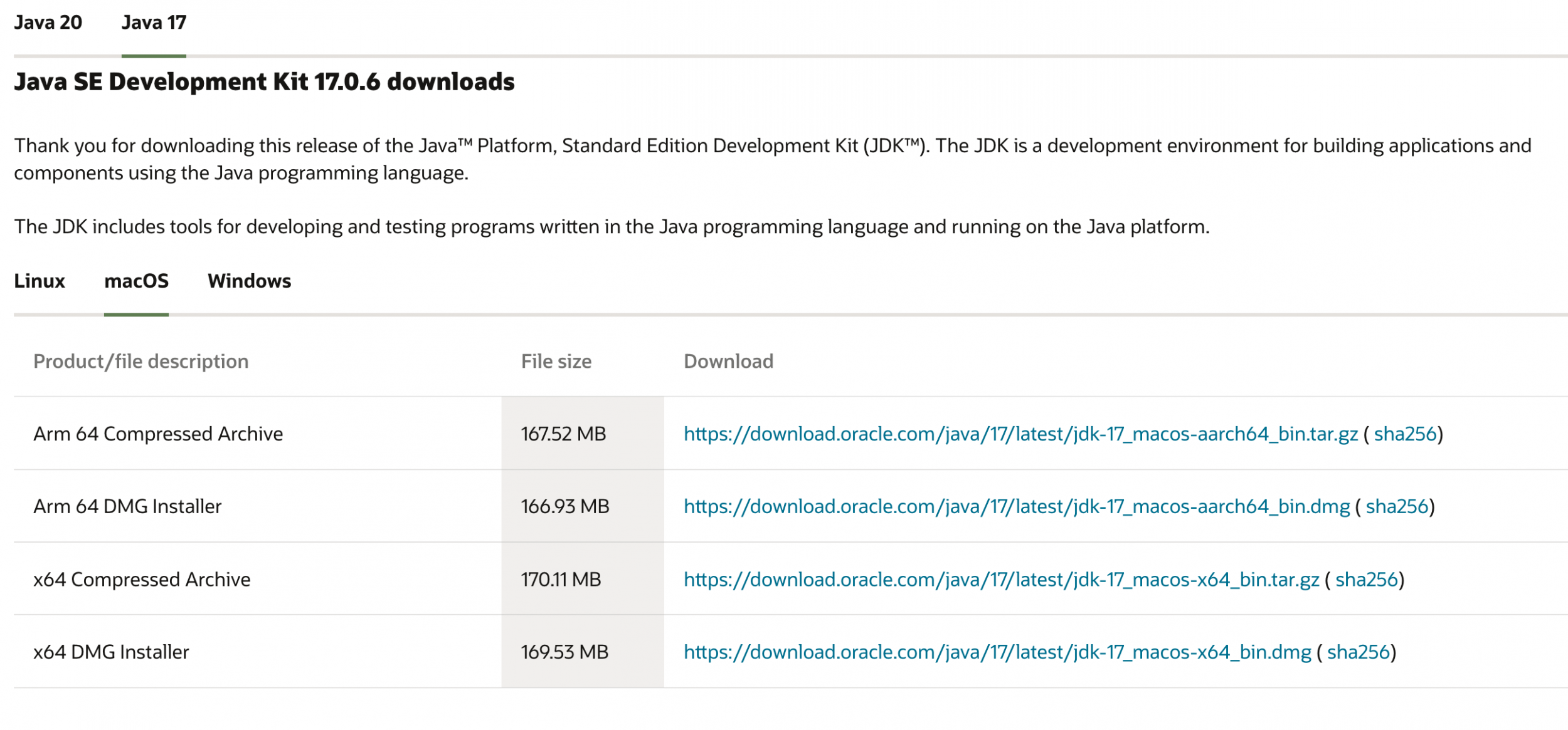 Zur Java Installation auf die Webseite von Oracle gehen und dort das Java Development Kit (JDK) Version 17 (für Windows / MacOS / Linux) herunterladen. Den Anweisungen zur Installation folgen.