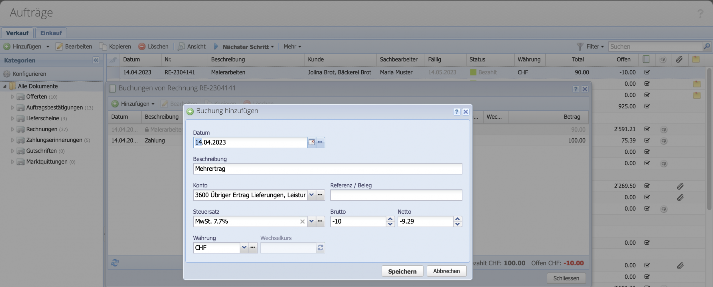 Es wurde eine Rechnung gestellt über 90.- und es werden 100.- überwiesen. Wohin mit den 10.- Mehrertrag?