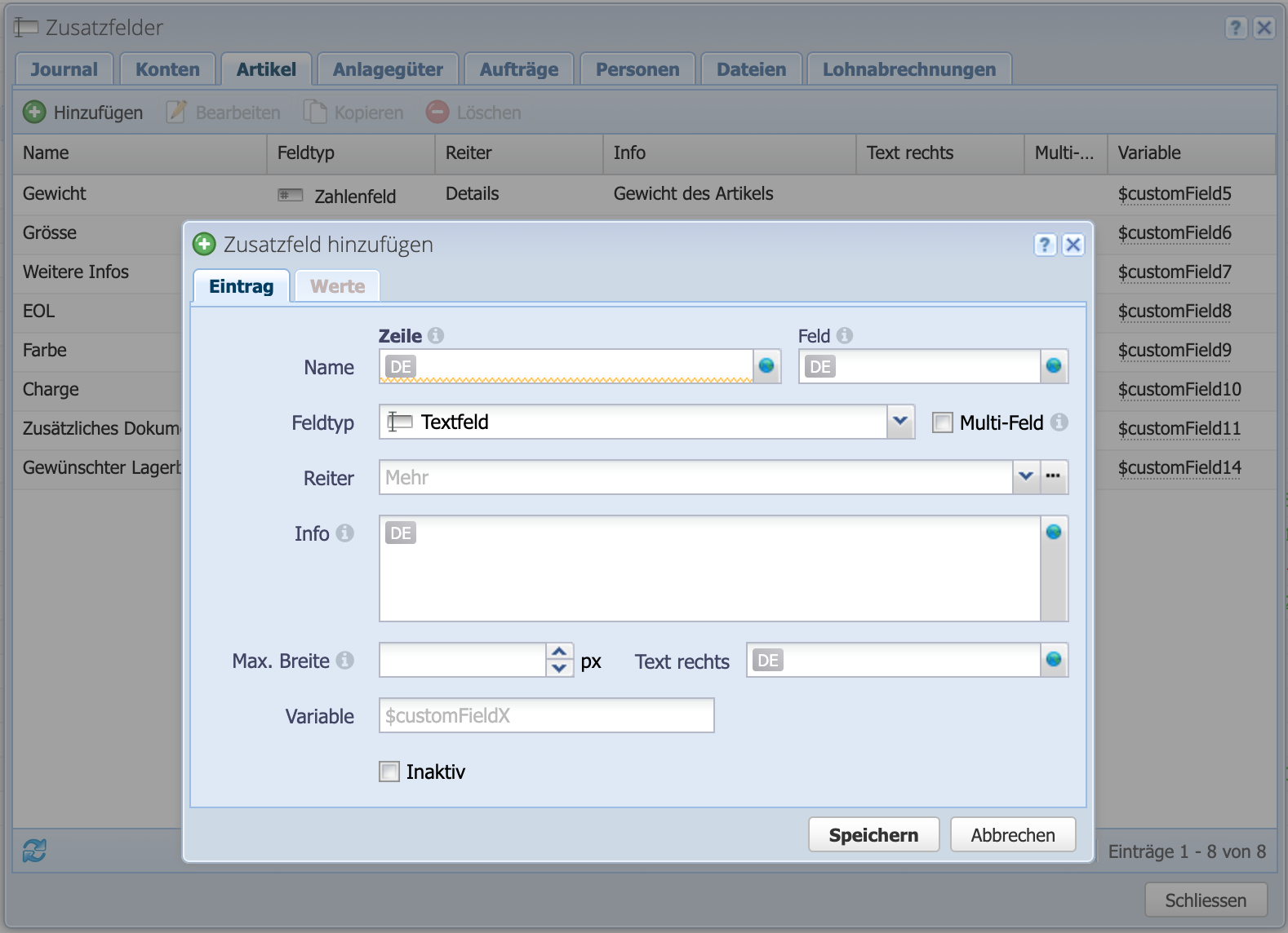 Vor- und Nachname sind Standardfelder in jeder Buchhaltung. Bedarf es mehr Infos und genaueren Beschreibungen wirds oft schwierig. Mit einem Zusatzfeld können zusätzlich individuelle Informationen genau da gespeichert werden wo nötig. Bei Kontakten, Buchungen, Artikel, Dokumenten, usw.