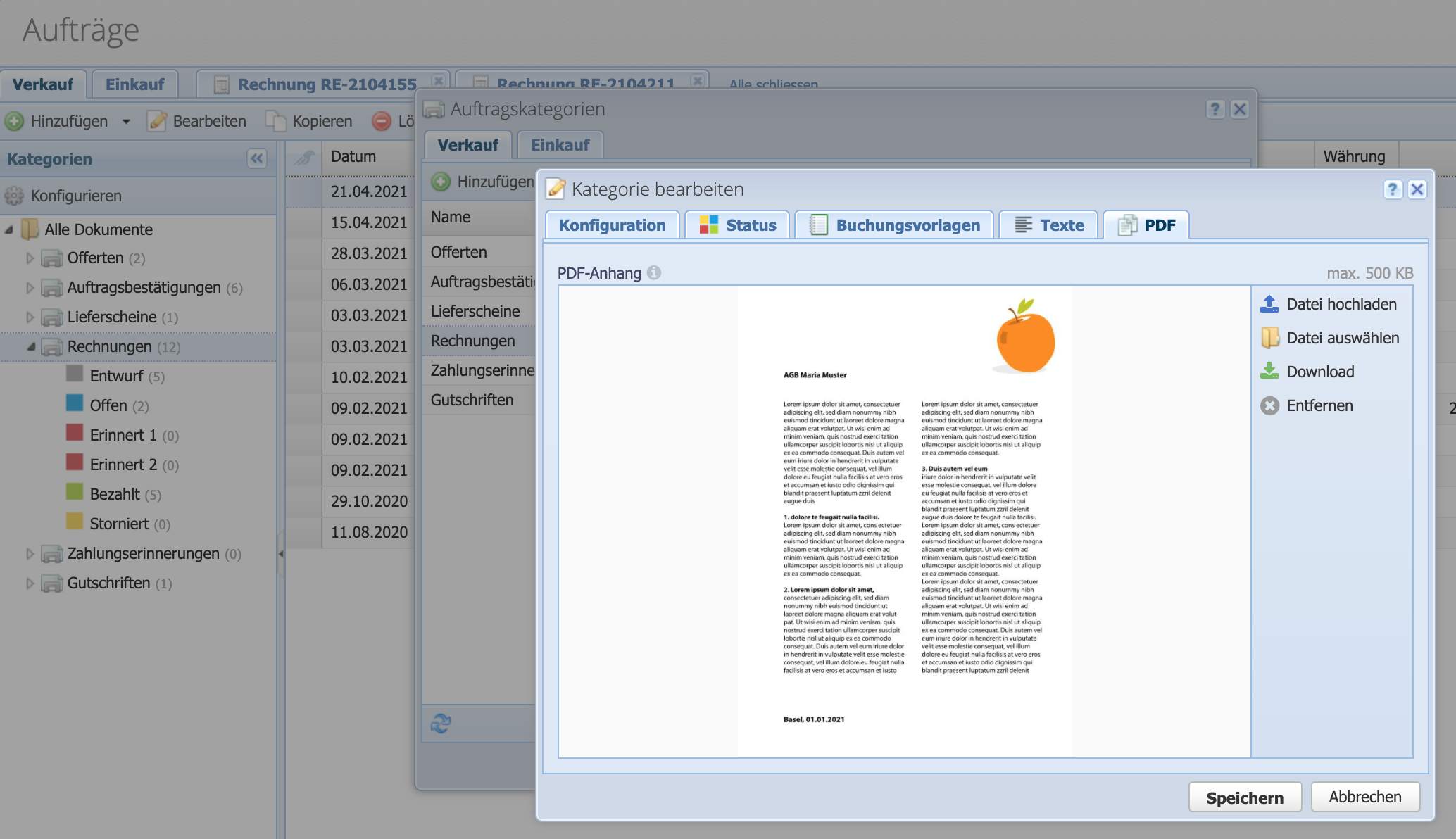 Bei gewissen Aufträgen muss immer der gleiche Anhang mitgeschickt werden. Zum Beispiel AGBs von Serviceverträgen, Leistungen eines Abos oder weiterführende Infos zu einer Offerte.