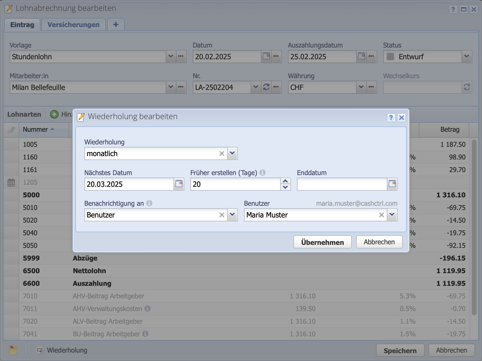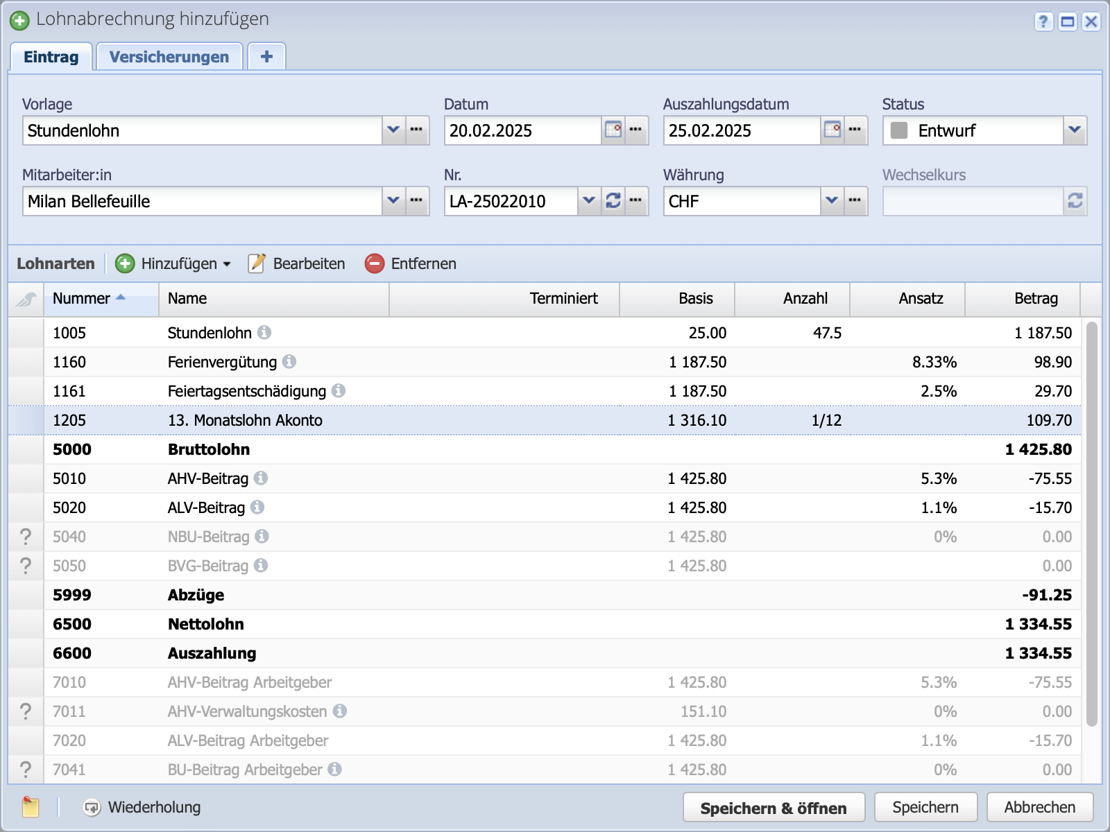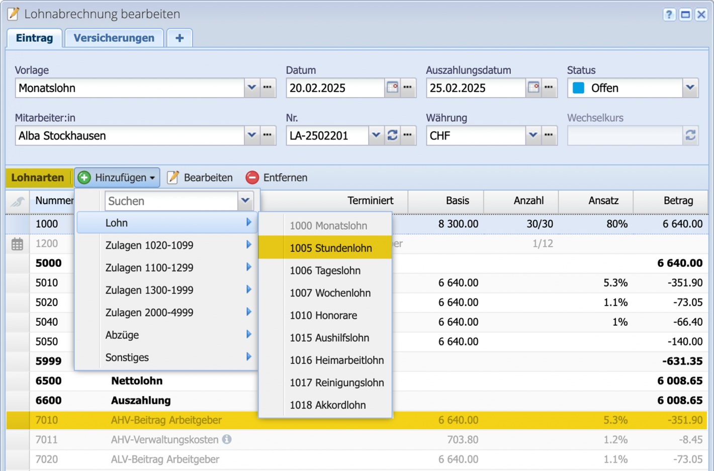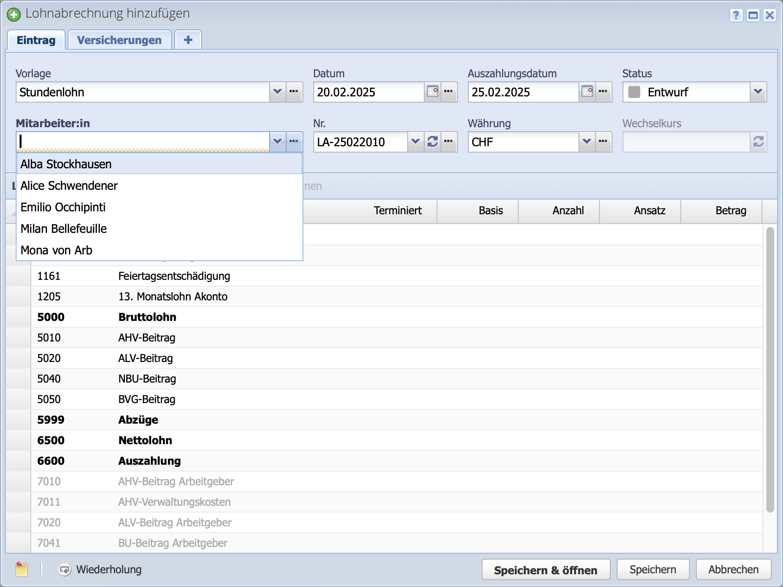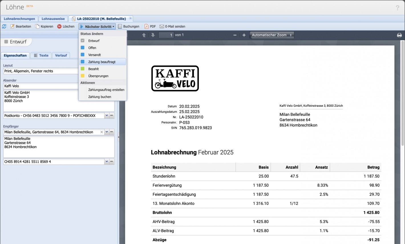 - Lohnzahlungskonto erfasst (optional für Zahlung via painfile)?