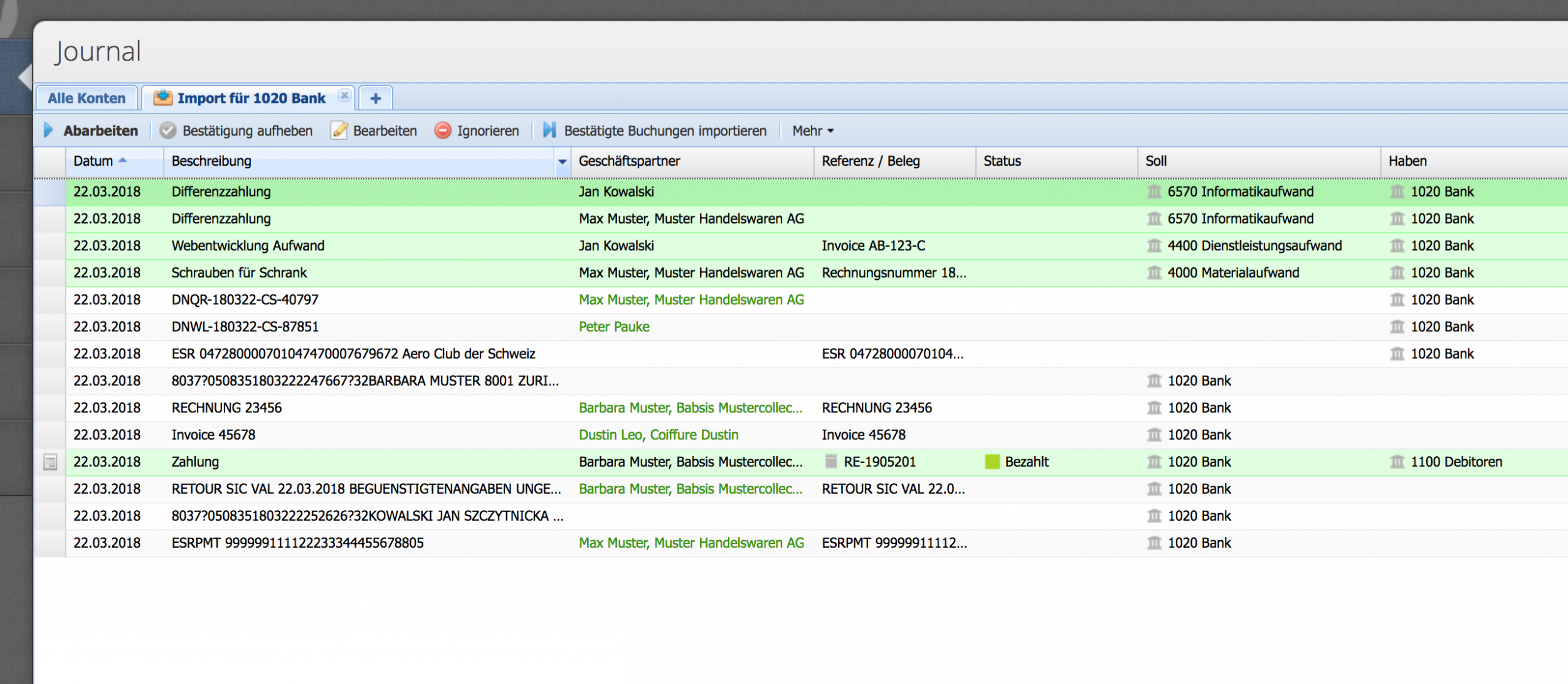 Der Import funktioniert mit allen Dateien gleich. Die Dateien werden vom Bankinstitut bereitgestellt. Falls dies noch nicht konfiguriert ist, treten Sie direkt in Kontakt mit Ihrem Finanzinstitut. Bei der Postfinance z.B. muss die Option zuerst angefordert und dann freigeschaltet werden.
