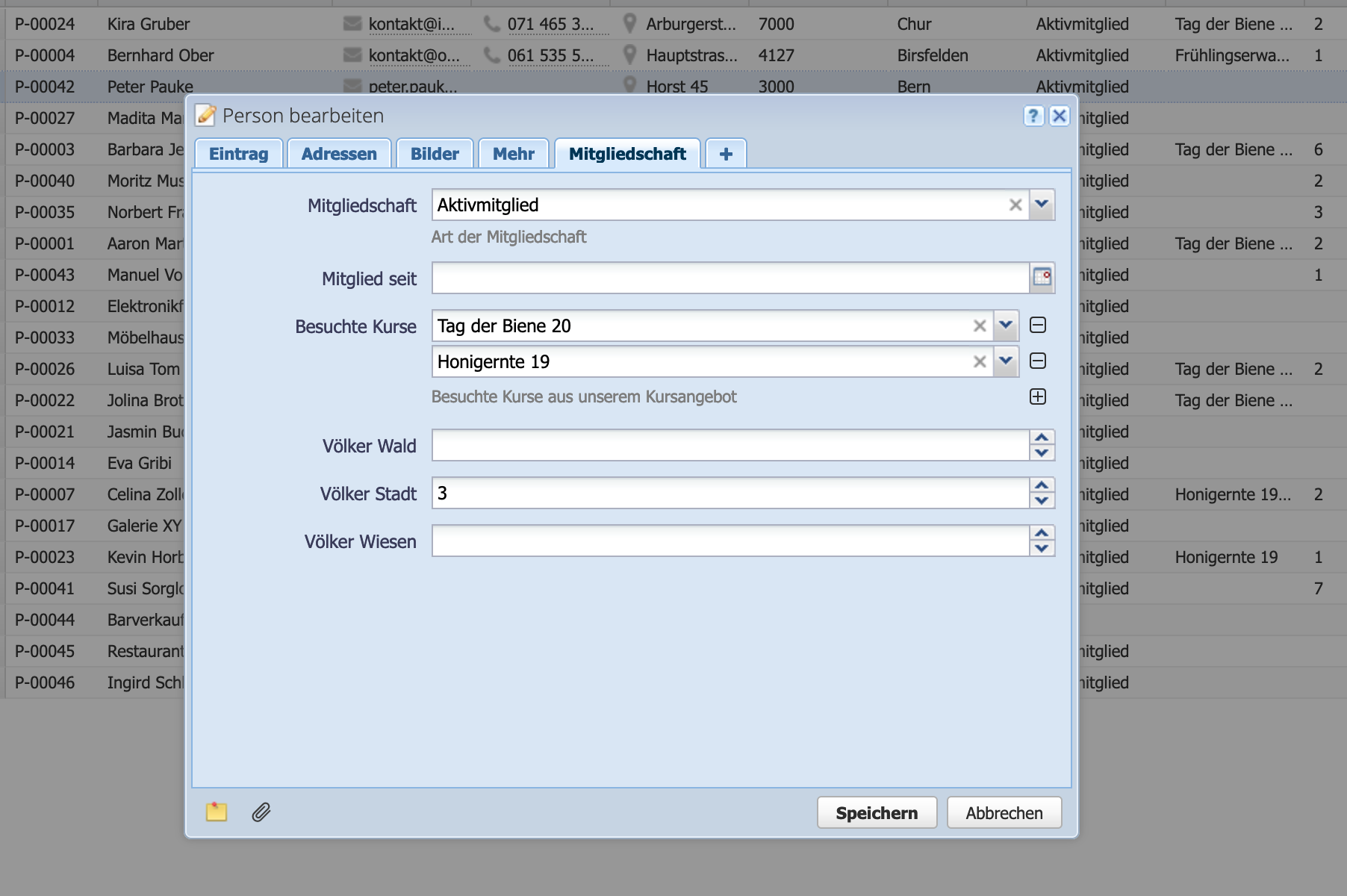 Gli indirizzi di soci, sponsor e altri contatti possono essere importati da un file Excel, CSV o vCard. Non c'è limite al numero di membri. Un club di nuoto ha bisogno di informazioni diverse dai soci rispetto a un club di api. Pertanto, i campi non sono predefiniti. Si stabilisce quali campi sono obbligatori e si raggruppano le proprie schede.