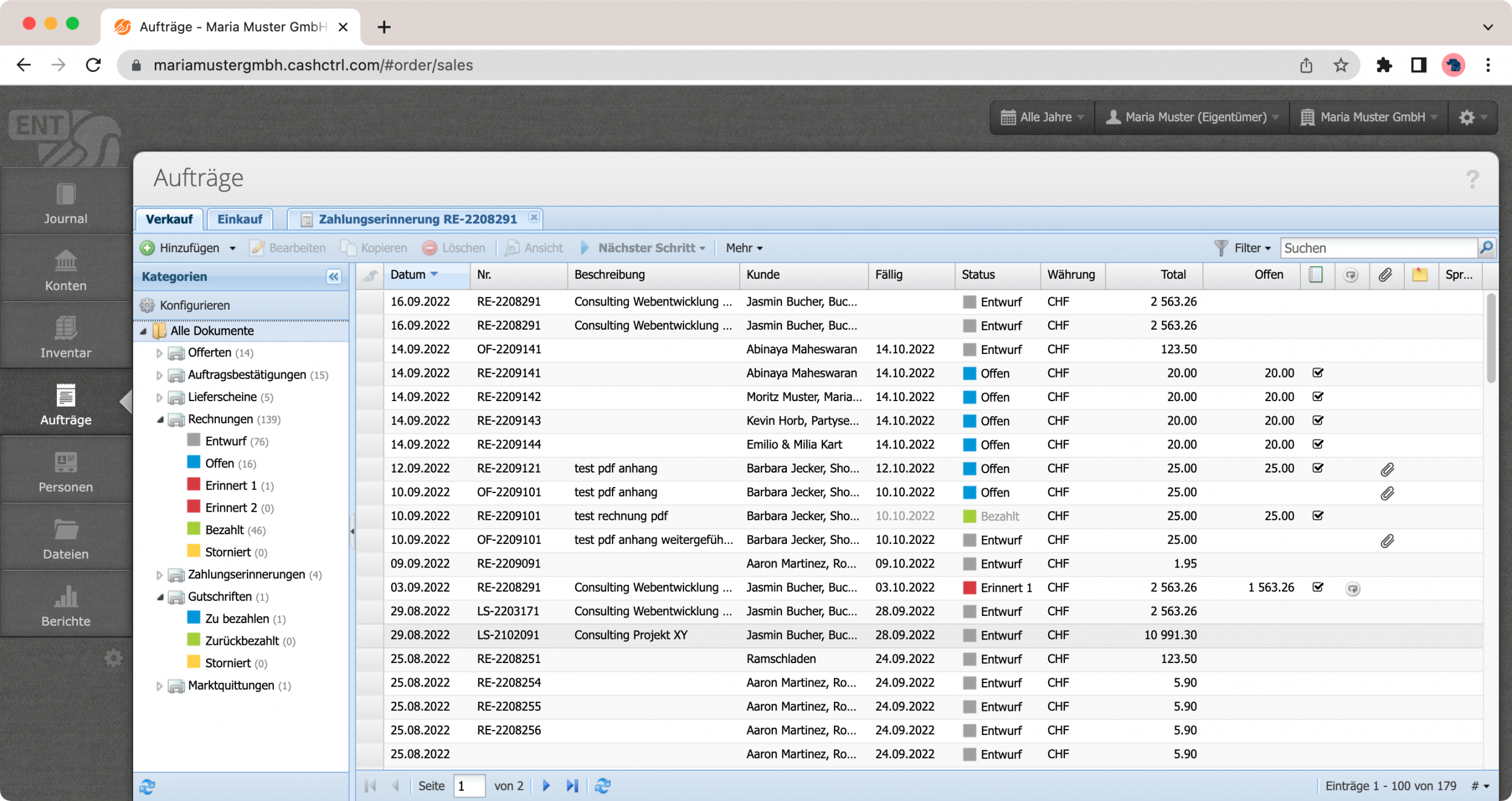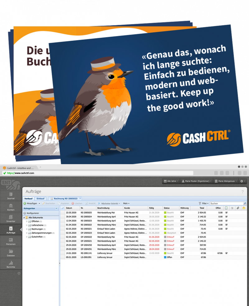 Rechnungen in Word zu schreiben ist Geschichte, denn ein grosses Anliegen ist uns vermeidbarer Aufwand zu minimieren. In CashCtrl erstellte Rechnungen und Offerten sind automatisch verbucht und wirken sich gleich auf die Berichte aus. So hast du durchs Jahr schon einen grossen Teil der Buchhaltung erledigt.