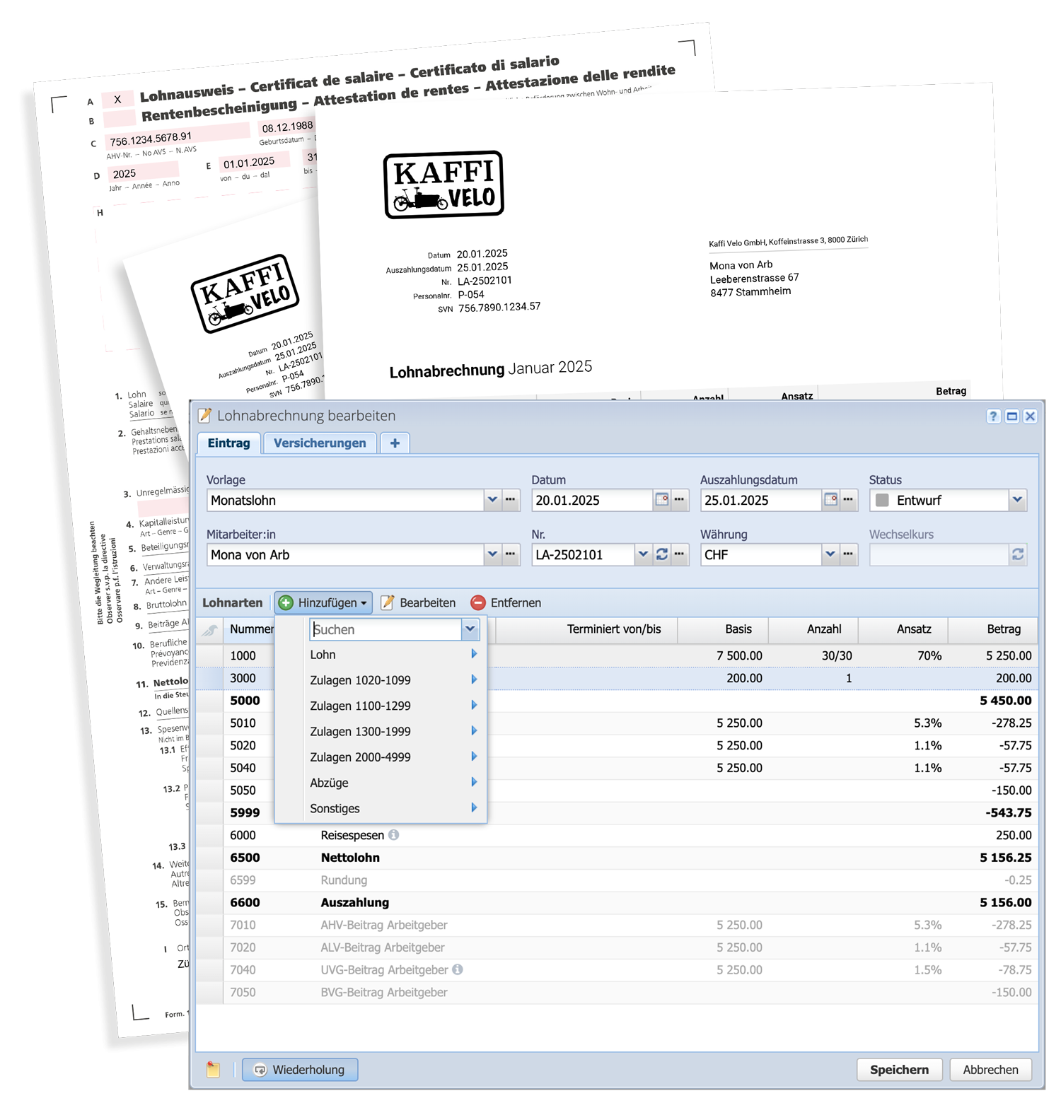 Personen mit mehr Vorwissen erstellen eigene Lohnarten mit Abhängigkeiten und rechnen mit Quellensteuer ab. Auswertungen für Bund und Kantone sind laufend aktualisiert.