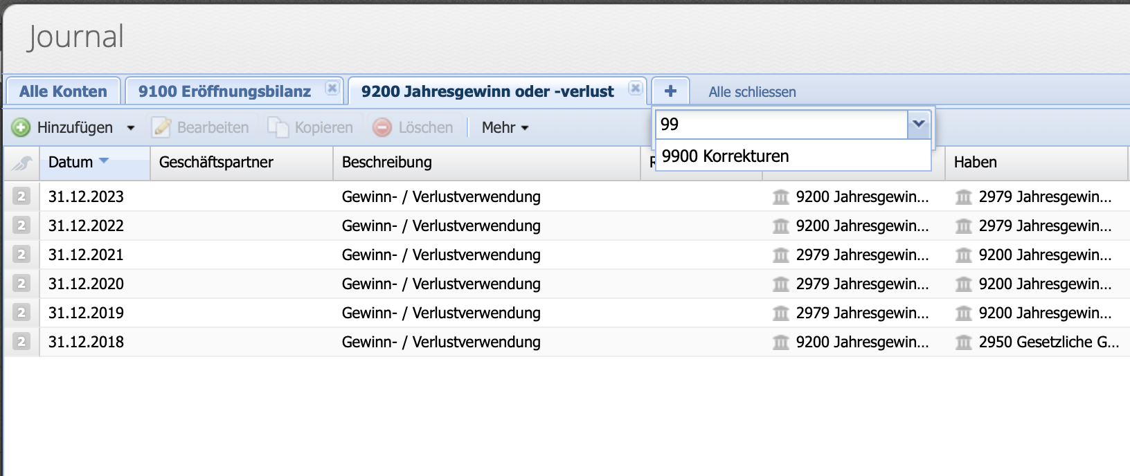 In the balance sheet report, display the opening balance sheet, final balance sheet I and final balance sheet II columns. The discrepancy becomes apparent when the number (e.g., of the profit carried forward) in the Opening column (e.g., 10/15/2023) differs from the number in the Final Balance Sheet column (e.g., 10/31/2023).